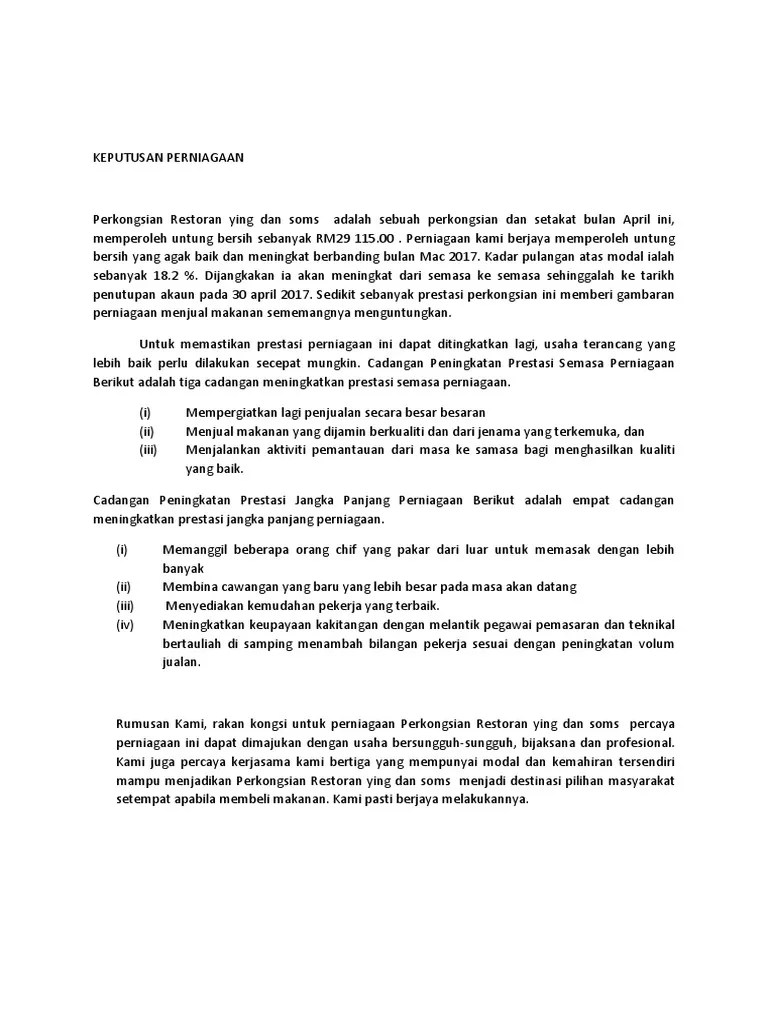 * prof mohd nazari ismail merupakan profesor kehormat di … Menentukan matlamat & objektif spesifik/jelas, dpt diukur, dpt dicapai, mempunyai tempoh masa, relevan. Pelaburan jangka pendek yang paling menguntungkan adalah forex trading. Saya berpandangan, kami juga melihat keadaan ini sebagai satu peluang. Rancangan operasi jangka masa pendek terperinci meliputi setiap bahagian/unit pengurusan peringkat bawahan. Standar pelayanan minimal (spm) merupakan ketentuan mengenai jenis pelayanan dasar dan mutu pelayanan dasar yang berhak diperoleh setiap warga negara secara minimal sebagaimana diatur dalam peraturan pemerintah nomor 2 tahun 2018 tentang standar pelayanan minimal. Perniagaan dapat memperoleh pinjaman yang lebih rendah daripada bank dan anda dapat memperoleh bayaran faedah setiap bulan. 21.07.2021 · *contoh maklumat semakan potongan gaji angkasa akan dipaparkan seperti di bawah: Ypr turut menyediakan pinjaman kewangan kepada pelajar yang memerlukan bantuan kewangan jangka pendek bagi membiayai kos pengajian mereka. Individu yang mempunyai perniagaan sendiri / bekerja sendiri yang terjejas pendapatan; Jul 10, 2022 · contoh karangan rencana spm from riomeriow.web.app. Menganalisis persekitaran perniagaan analisis persekitaran dgn melihat apa yg sdg berlaku ramal apa yg akan berlaku Contoh borang 24 dan 49 ssm. Aug 26, 2022 · bagaimanapun, vivek berkata, kumpulan itu tidak berhasrat menamatkan perniagaan di negara itu di sebalik krisis hutang dan kejatuhan rupi sri lanka. Penawaran boleh dianggap stabil kerana kebangkitan negara pengeksport seperti china, india, vietnam, myanmar selain pasaran yang telah bertapak lama seperti thailand.